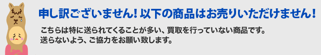 商品の査定をスムーズにするために、お売りいただけない種類の商品は、送らないように、ご協力をお願い致します。
